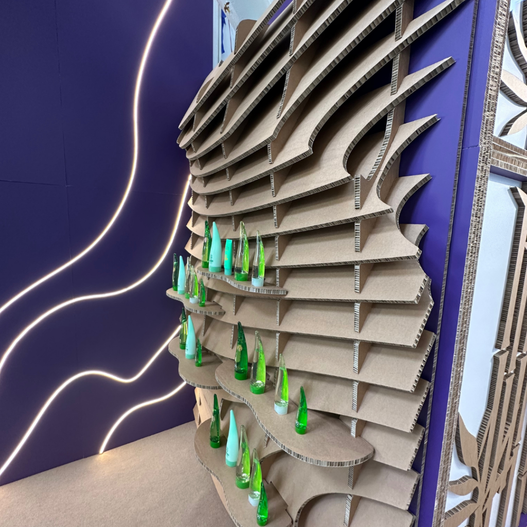 Marka Holika Holika postawiła przed nami ambitne zadanie. Jednym słowem stworzenie na prestiżowych targach w Bolonii przestrzeni, która połączy nowoczesny koreański design z kojącym ciepłem natury. Wykorzystując karton 16 mm, zaprojektowaliśmy stoisko bogate w detale i unikalne zdobienia, które stały się znakiem rozpoznawczym marki na tym wydarzeniu. Naszym celem było stworzenie ekspozycji na tyle autentycznej i estetycznej, by skutecznie zatrzymać tysiące profesjonalistów z branży beauty. Tymczasem jednocześnie udowodniliśmy, że ekologiczny materiał to synonim nowoczesnego luksusu.