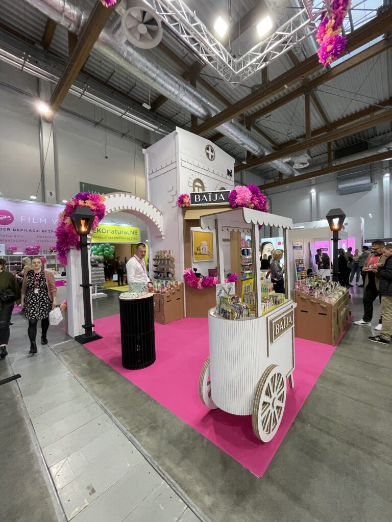 Marka Baija chciała czegoś więcej niż ekspozycji – marzył im się powrót do korzeni i stworzenie klimatu romantycznej, francuskiej uliczki. Naszym zadaniem było zaprojektowanie konstrukcji, która mimo swoich ogromnych gabarytów (ponad 5 metrów wysokości!), zachowa lekkość, urok i przytulność, przyciągając odwiedzających swoją autentycznością. Wysokie stoisko z kartonu 16 mm było hitem targów LNE w Krakowie.